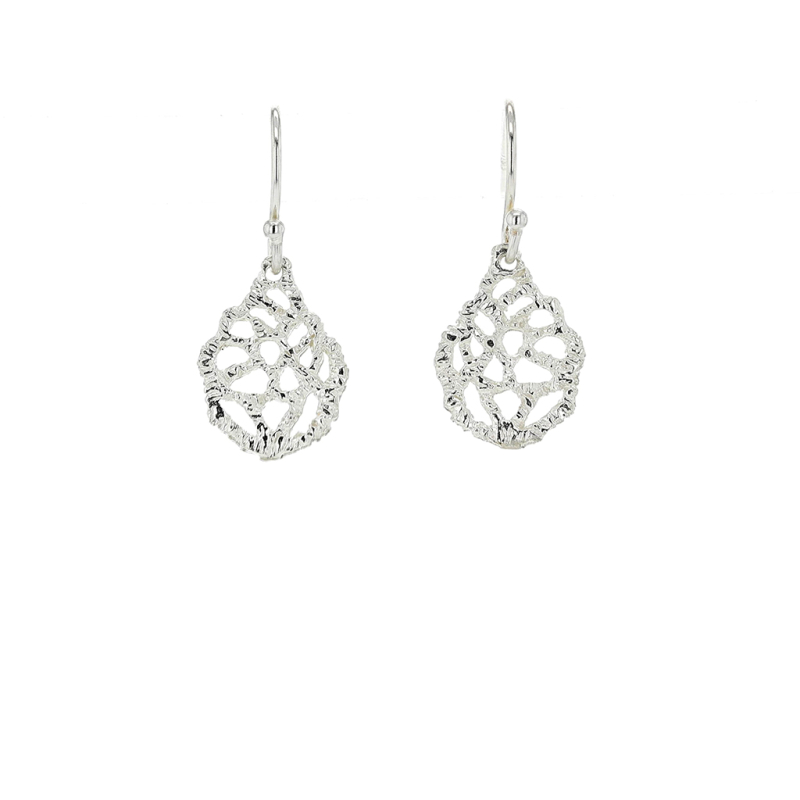Textural grape drops are hand-crafted in etched silver in these hanging earrings by Danielle Welmond.