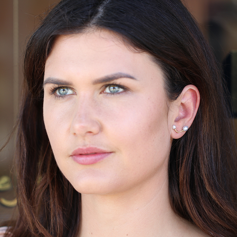 Twisted 18k gold post earrings with two Keishi pearls on the ends in Josephine Bergsoe's unique seafire style.