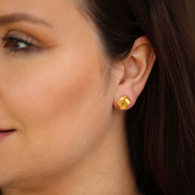 A 22k gold Mobius spiral is set on 18k gold posts in these earrings by Petra Class.