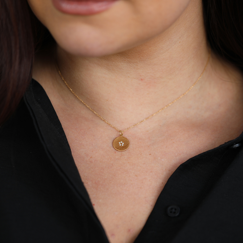 Hammered 22k gold disc with Diamond accent pendant hangs from a 14k gold chain necklace by Ananda Khalsa. Perfect on its own or layered!