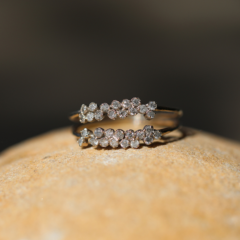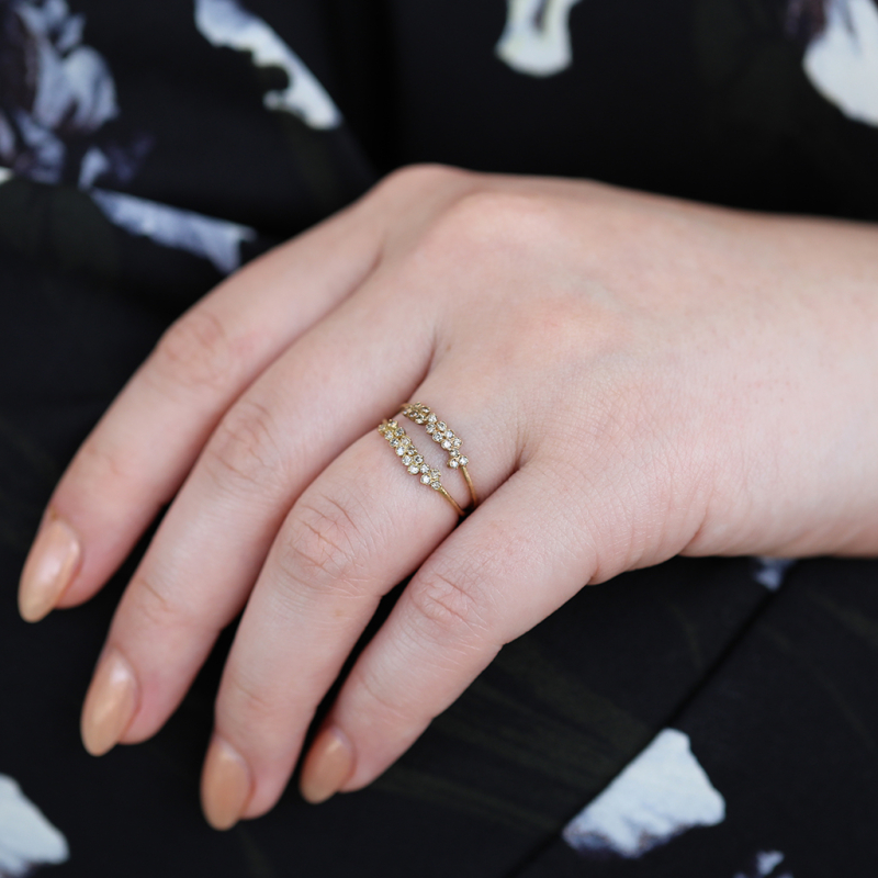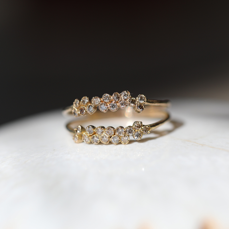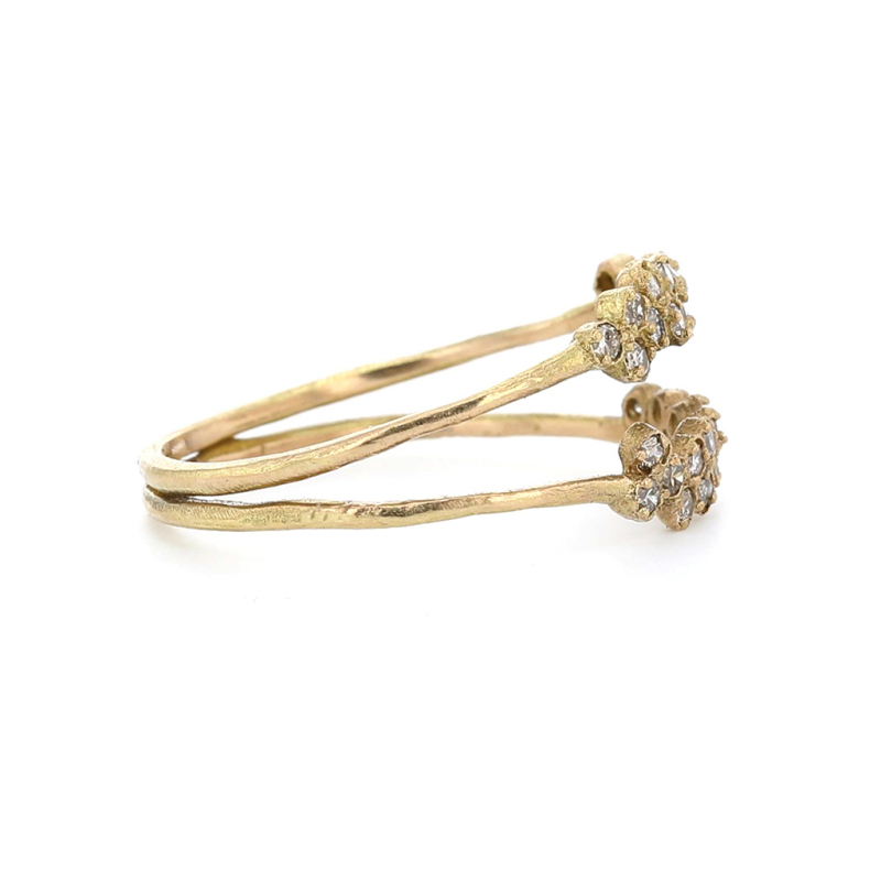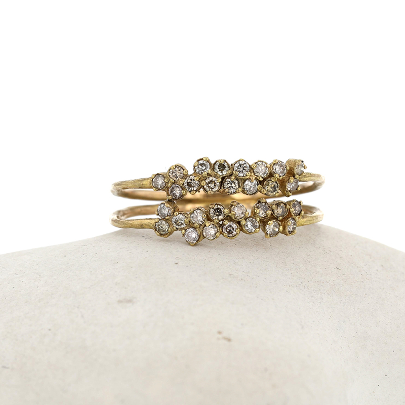 Two rows of Brown Diamonds are laced on double bands of Naohiko Noguchi's signature 14k yellow gold by Japanese master craftsmen. This ring is delicate yet makes a statement.